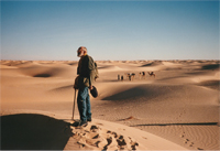Théodore MONOD a été vers la fin de sa vie l’un des savants français les plus connus et les plus « médiatisés ». Pourtant, en 1988, quand Karel PROKOP a eu l’idée de l’accompagner dans une de ses « méharées » à la recherche de la plus grosse météorite au monde, perdue dans les sables du Sahara, ce « naturaliste-voyageur » était pratiquement inconnu du grand public – et même des chaînes de télévision de l’époque. Il n’était encore jamais apparu sur le petit écran et aucun film sur lui n’existait alors. Ainsi, cherchant le financement pour l’accompagner et louer une caméra et cinq chameaux, Karel PROKOP s’est même entendu dire après plusieurs refus : « cela n’intéressera personne, et puis, on a déjà filmé le Paris-Dakar. » Cette anecdote explique pourquoi, quand Théodore MONOD apparaît à l’écran au début du film, le commentaire commence par « qui est cet homme et que fait-il au milieu du désert ? »